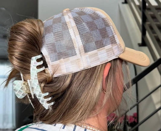 BLACK/WHITE CHECKERED Baseball Cap Claw Clip
