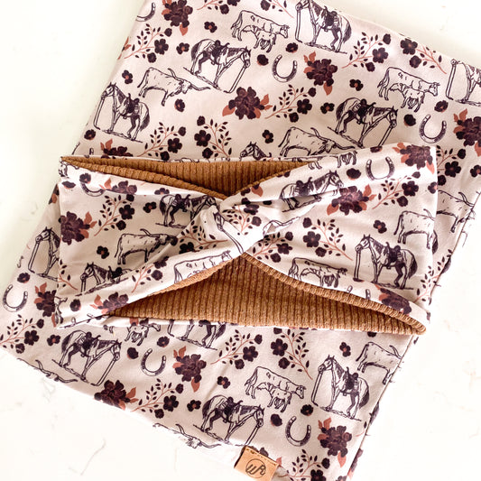 Boho Floral Cow and Tan Koozie Set