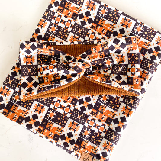 Earthy Patchwork and Rust Koozie Set