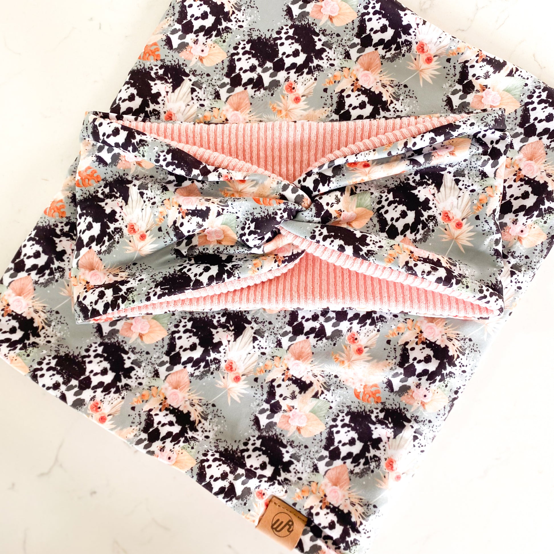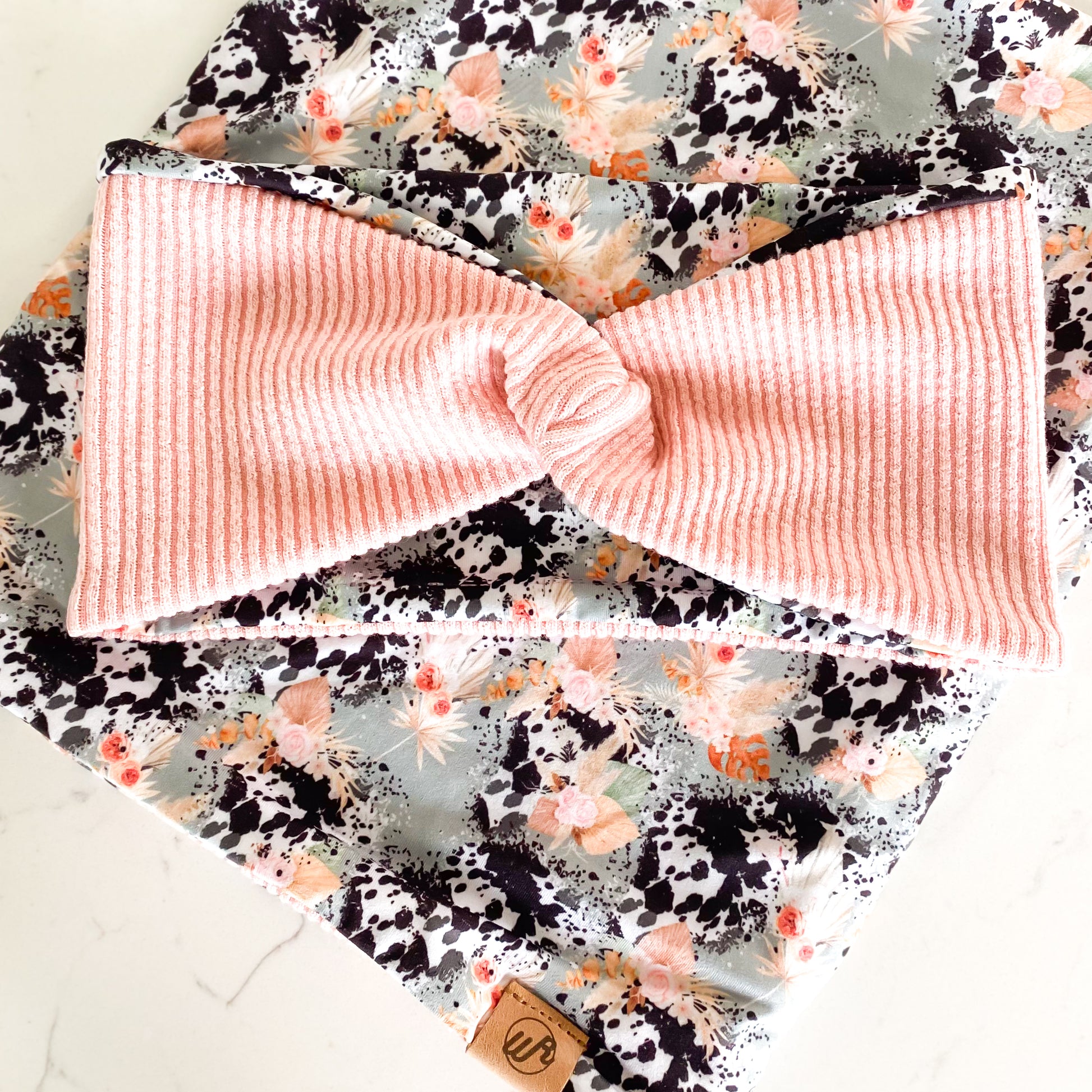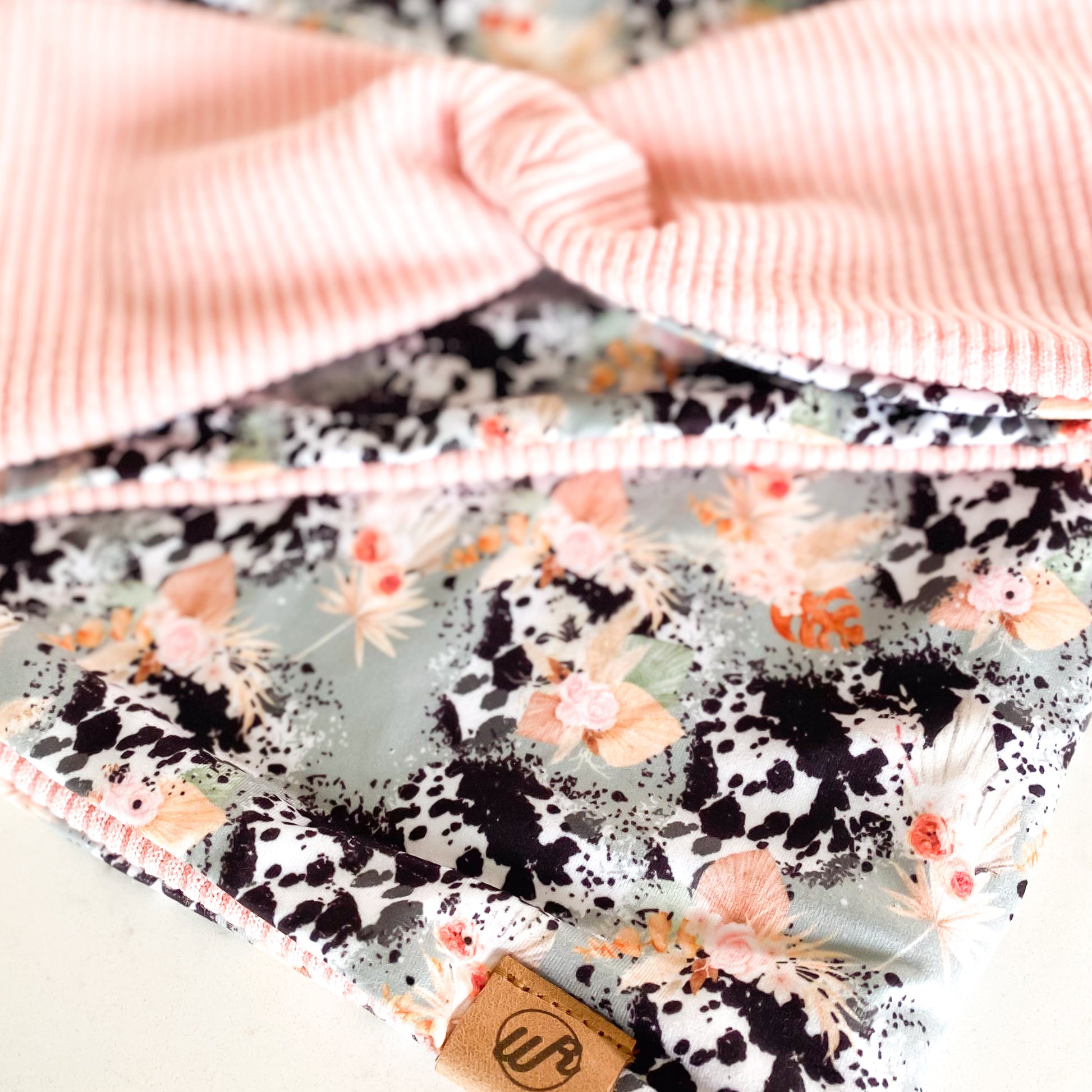 Boho Floral Cow and Pink Koozie Set