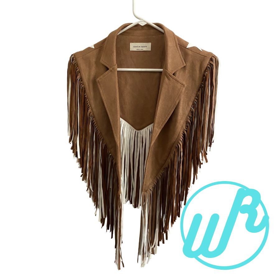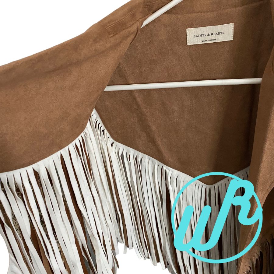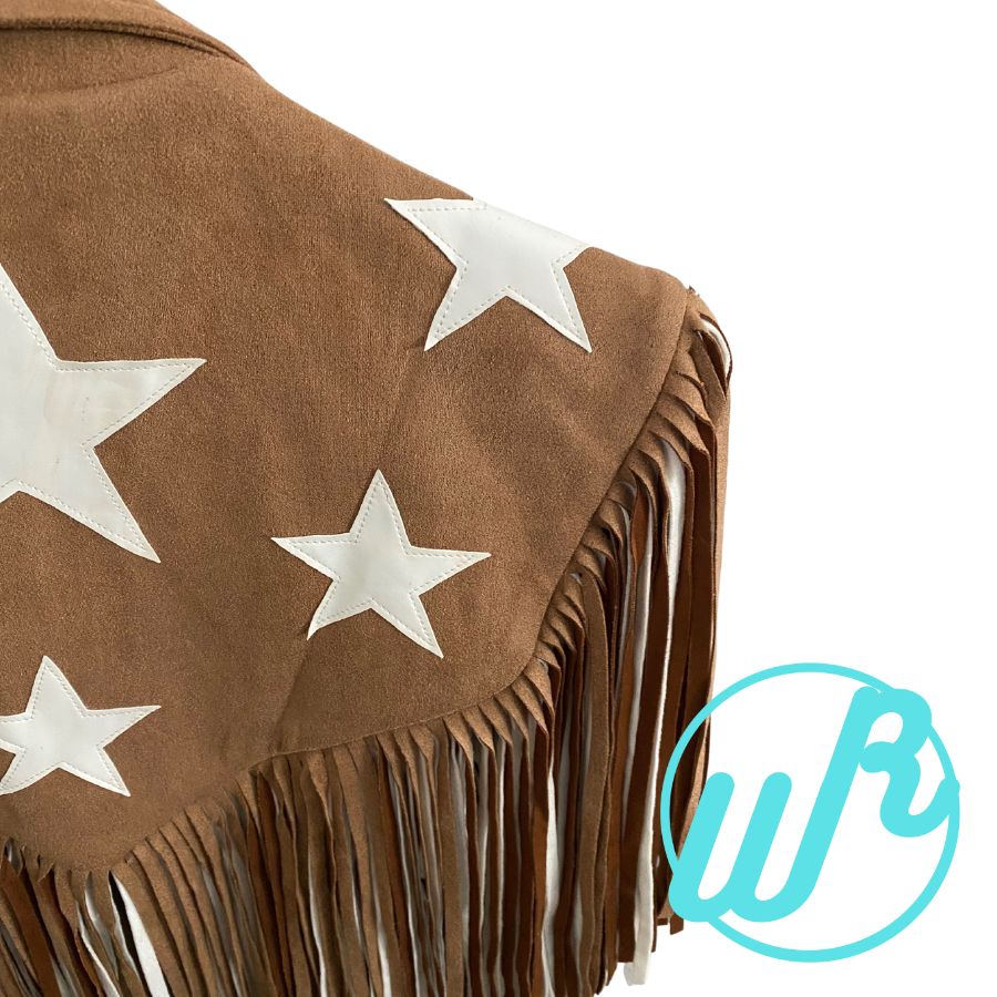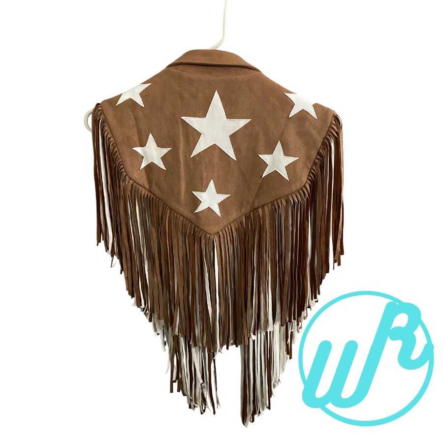 Radiate celestial beauty with this dazzling brown cape featuring starry patterns and delicate fringes!