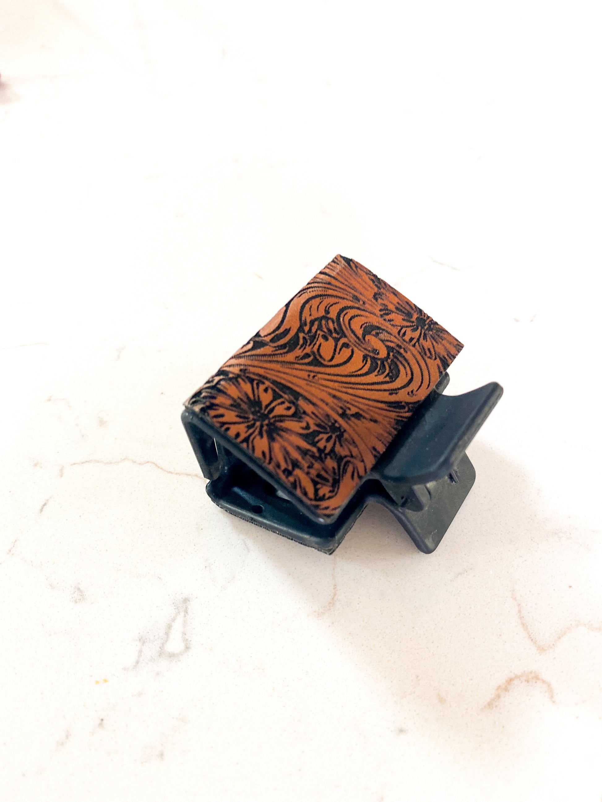 Are you tired of constantly searching for the perfect claw clip? Look no further! Our sturdy matte black Claw Clips not only features sleek leather material with a laser design, but it also offers the highest quality in the market. You'll never have to replace your clip again!"